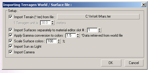 1. Import a Terragen world surface file.