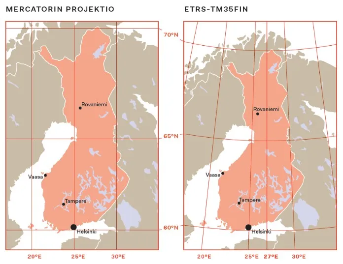 - Compatible with Global Coordinate Systems: As an extension of ETRS89/UTM 35N, the TM35FIN aligns closely with the WGS84 ellipsoid, facilitating seamless integration with GPS data and international Geographic Information Systems (GIS).