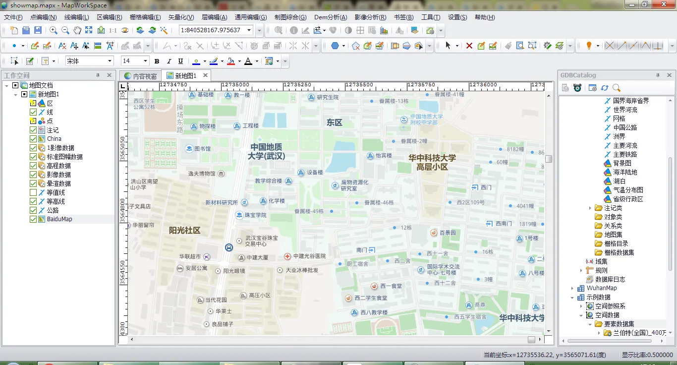 - MapGIS desktop interface.