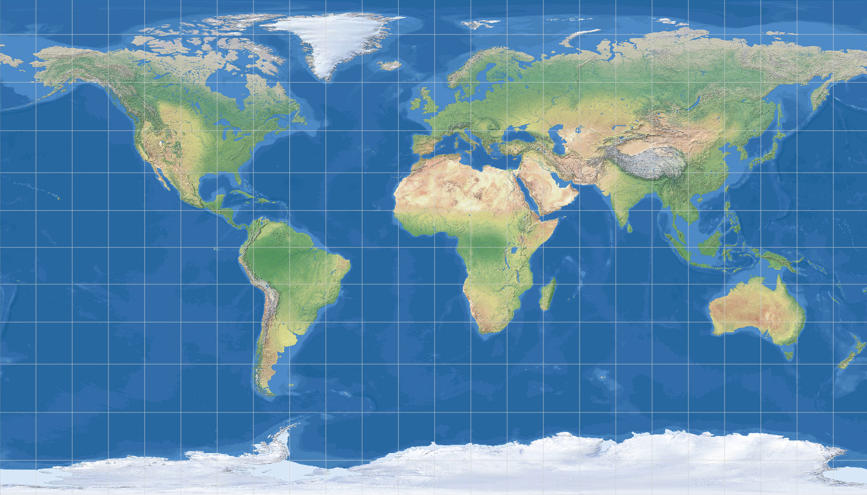 1. A map projection using the Patterson Cylindrical Projection centered on Greenwich.