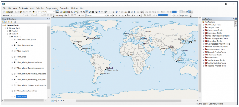 - **Extensive data support: **ArcGIS supports a variety of geographic data formats, including geographic coordinates, geographic layers, terrain data, and meteorological data.