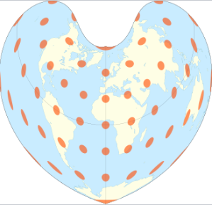 2. Bonne projection with Tissot's indicatrix of deformation.