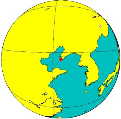 2. Present the Earth's surface centered around a specific central point Dalian.