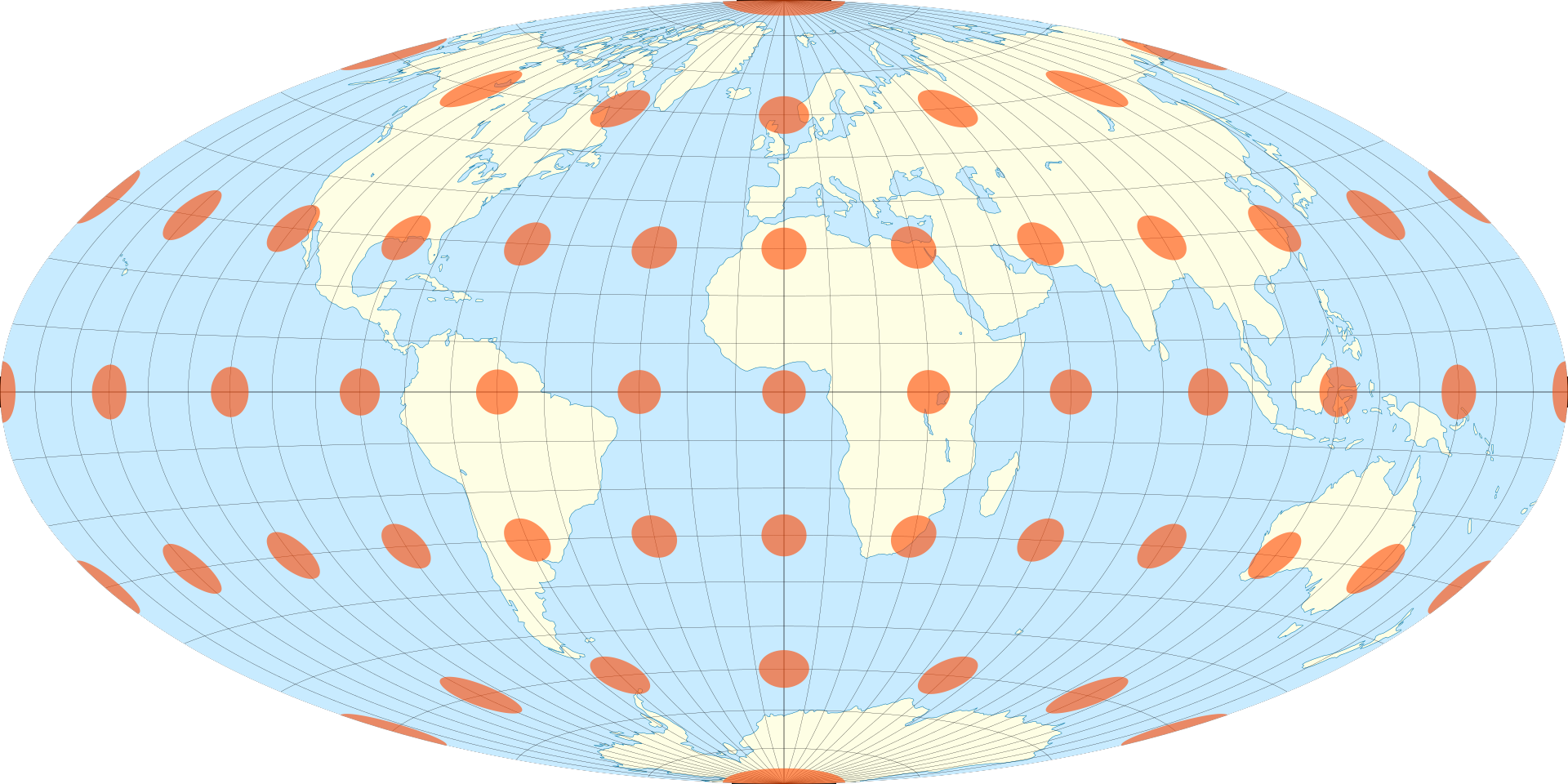 2. The Hammer projection with Tissot's indicatrix of deformation.