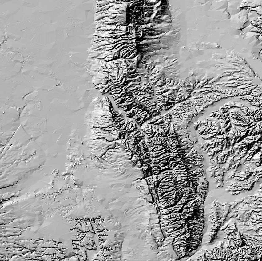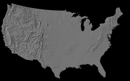2. A hillshade map of the contiguous United States.
