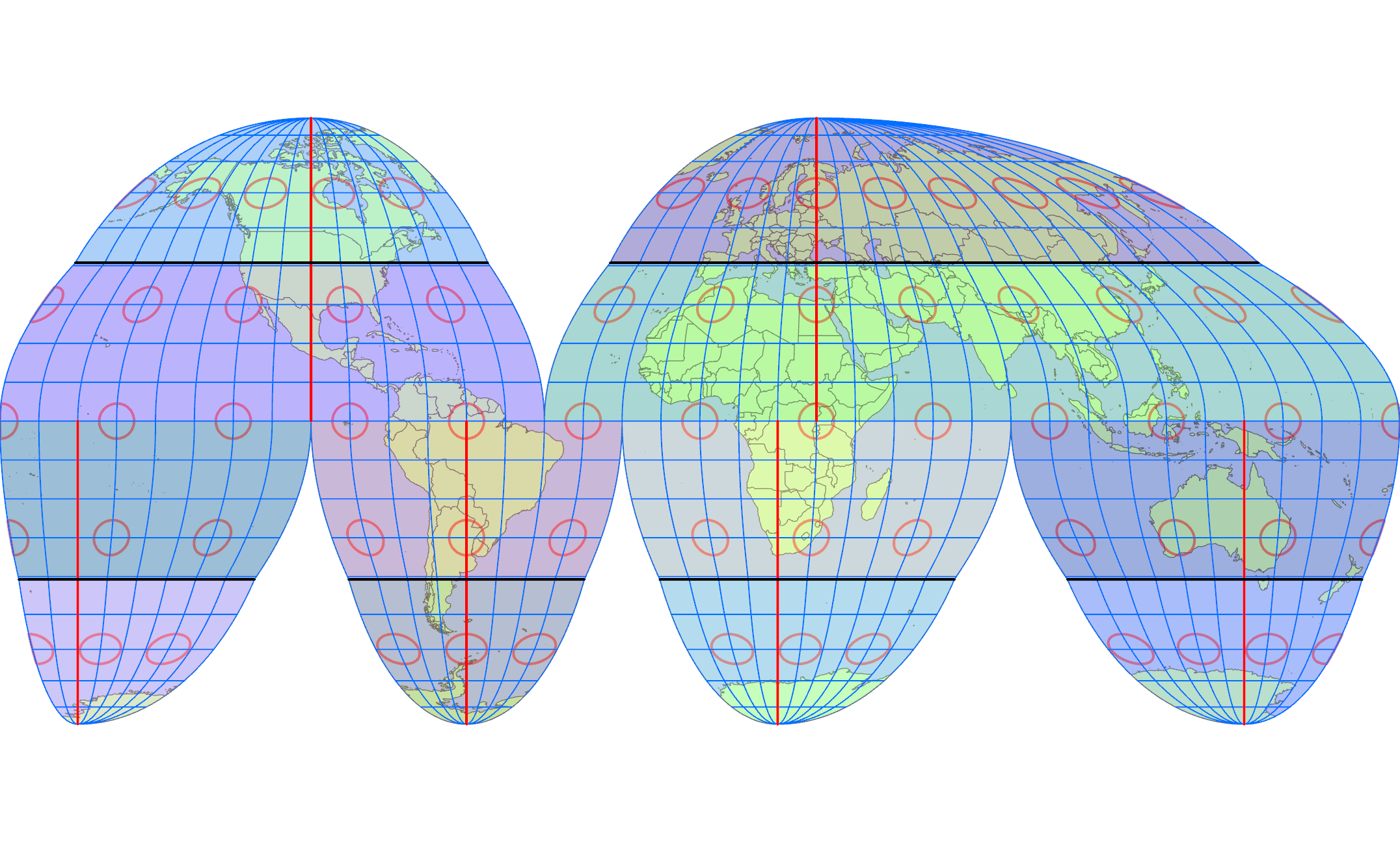 ファン・デル・グリンデン図法(Van der Grinten Projection)は、1898 年にアメリカの地理学者アルフォンス・ファン・デル・グリンデン(Alphons J. van der Grinten)によって開発された世界地図投影法です。この図法は、地球全体を一つの円の中に収めることができるという特徴を持ち、経線と緯線を曲線として描写することで、視覚的にバランスの取れた世界地図を提供します。メルカトル図法と比べて極地の歪みを抑えつつ、大陸の形状を比較的自然な印象で表現できることから、アメリカ地質調査所(USGS)などの地図にも採用された歴史があります。