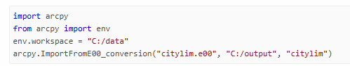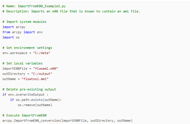 - ImportFromE00 (E00 からインポート) の例 2 (スタンドアロン スクリプト)。