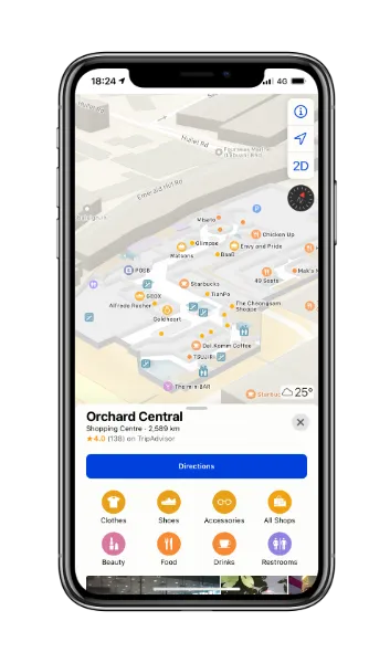 - Apple Maps との高度な互換性:IMDF は Apple が開発したフォーマットであり、Apple Maps に直接インポートすることで、屋内マップとして利用可能。Apple のエコシステム(iPhone、iPad、Mac)と統合しやすい。