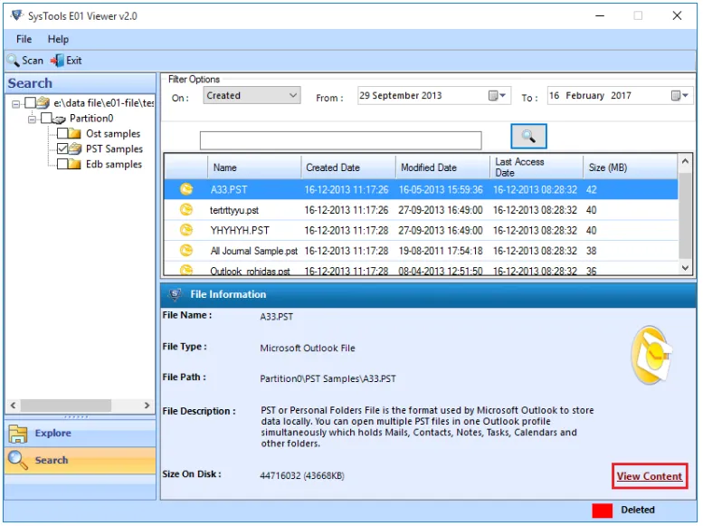 - SysTools で E01 ファイルを開く。