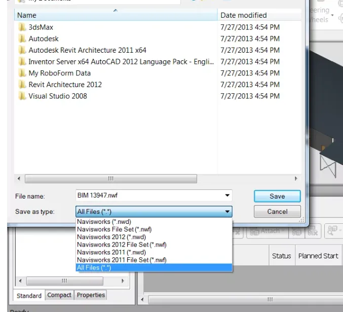 - Autodesk で NWD ファイルを開く。