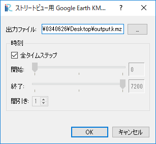 - ストリートビュー用 Google Earth KMZ のエクスポートダイアログ。