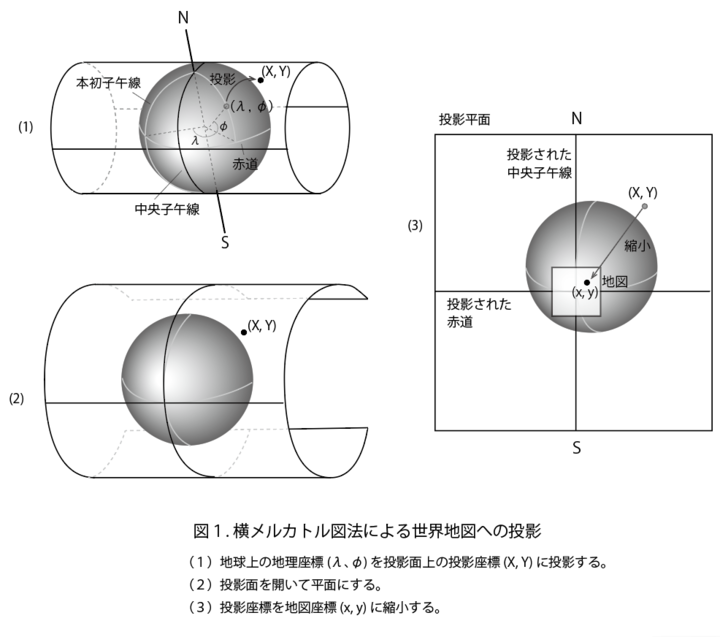 投影方法:地域や用途によって適したものが異なり、形状、面積、距離、または方向にさまざまな程度の歪みをもたらします。多くの種類があり、例としてガウス=クリューゲル投影、ランベルト投影、メルカトル投影などが挙げられます。そのため、特定の地図作成や分析ニーズを満たすために、歪みを最小限に抑えることができる投影方法を選択することが重要です。